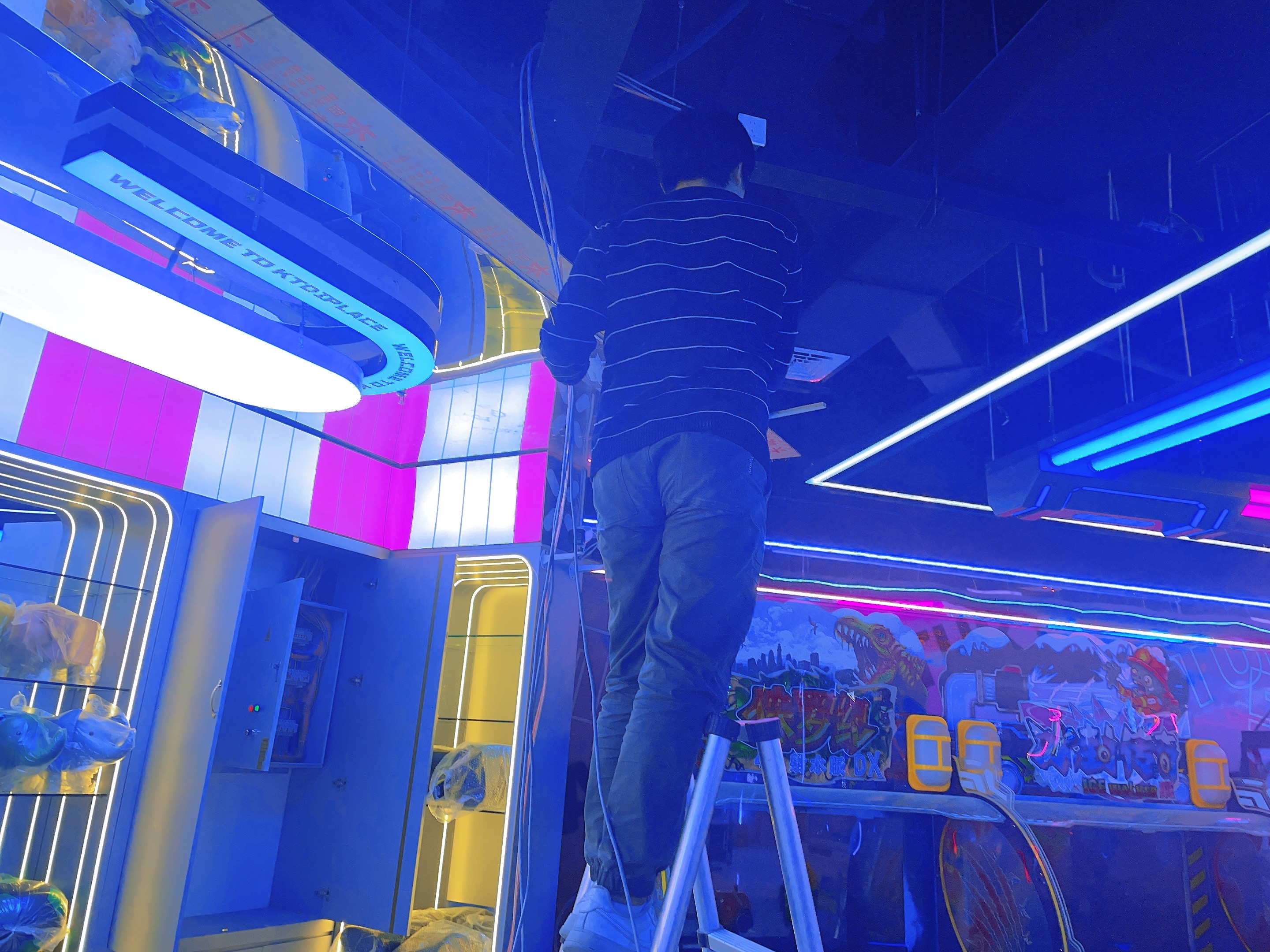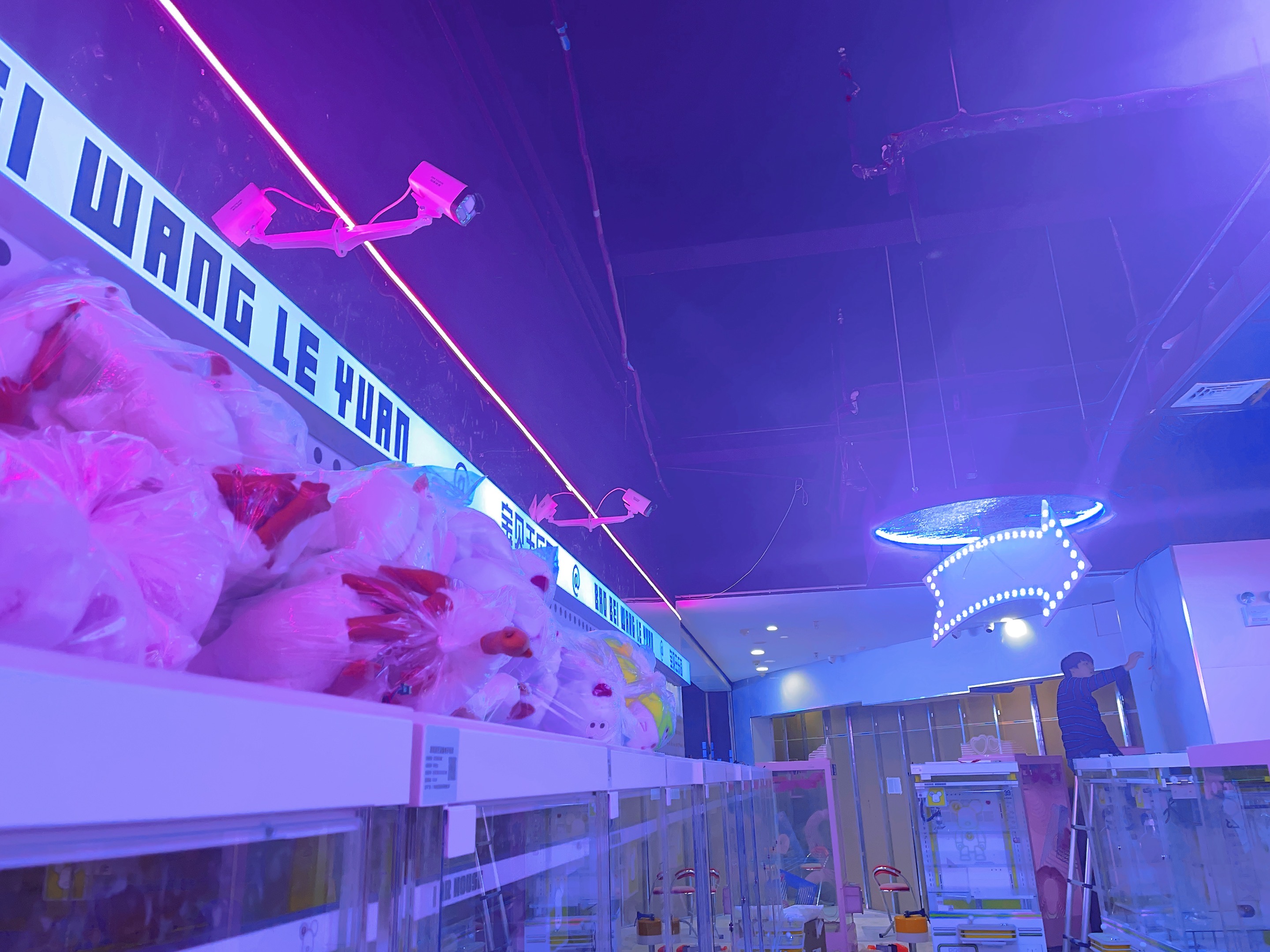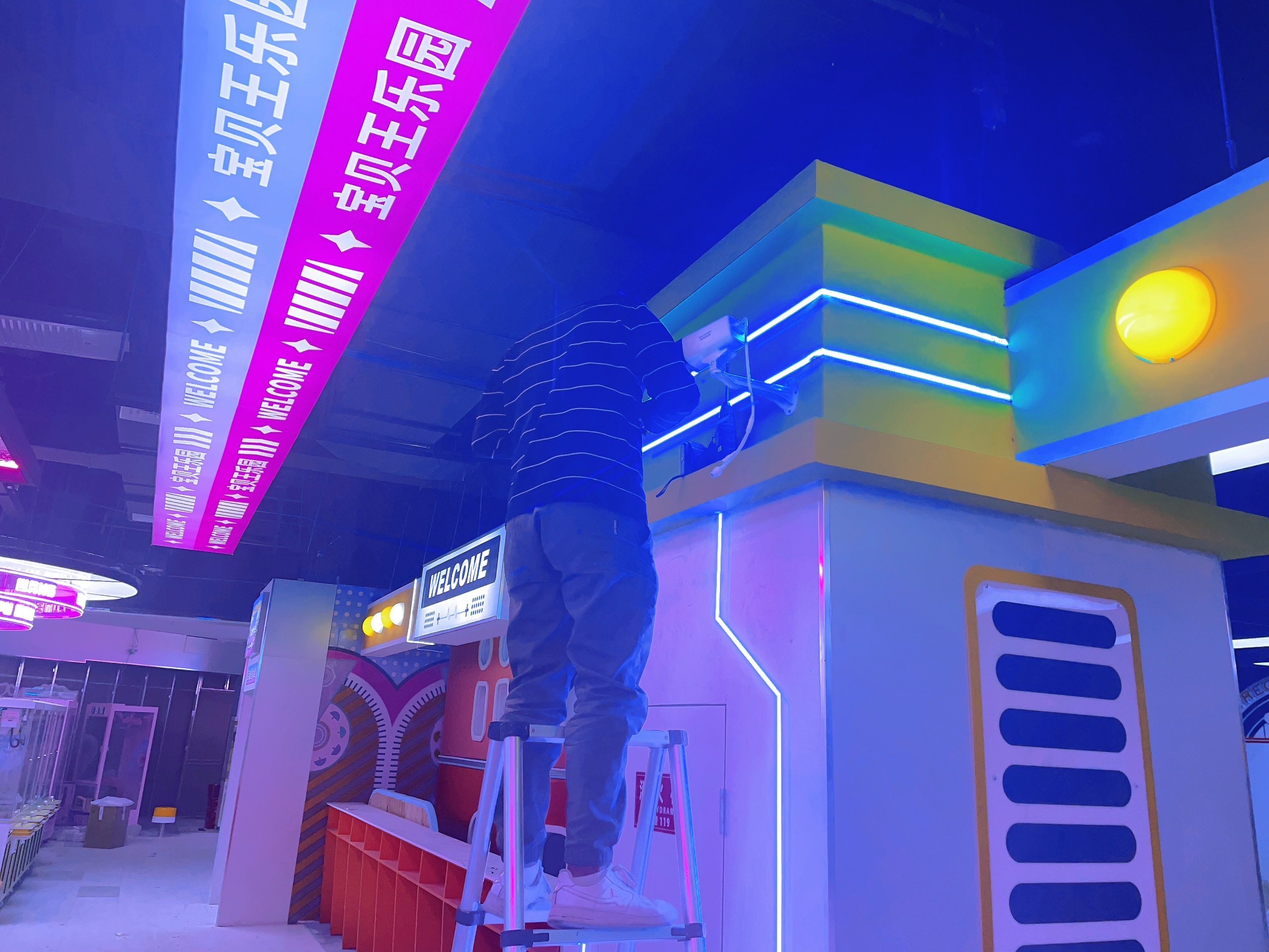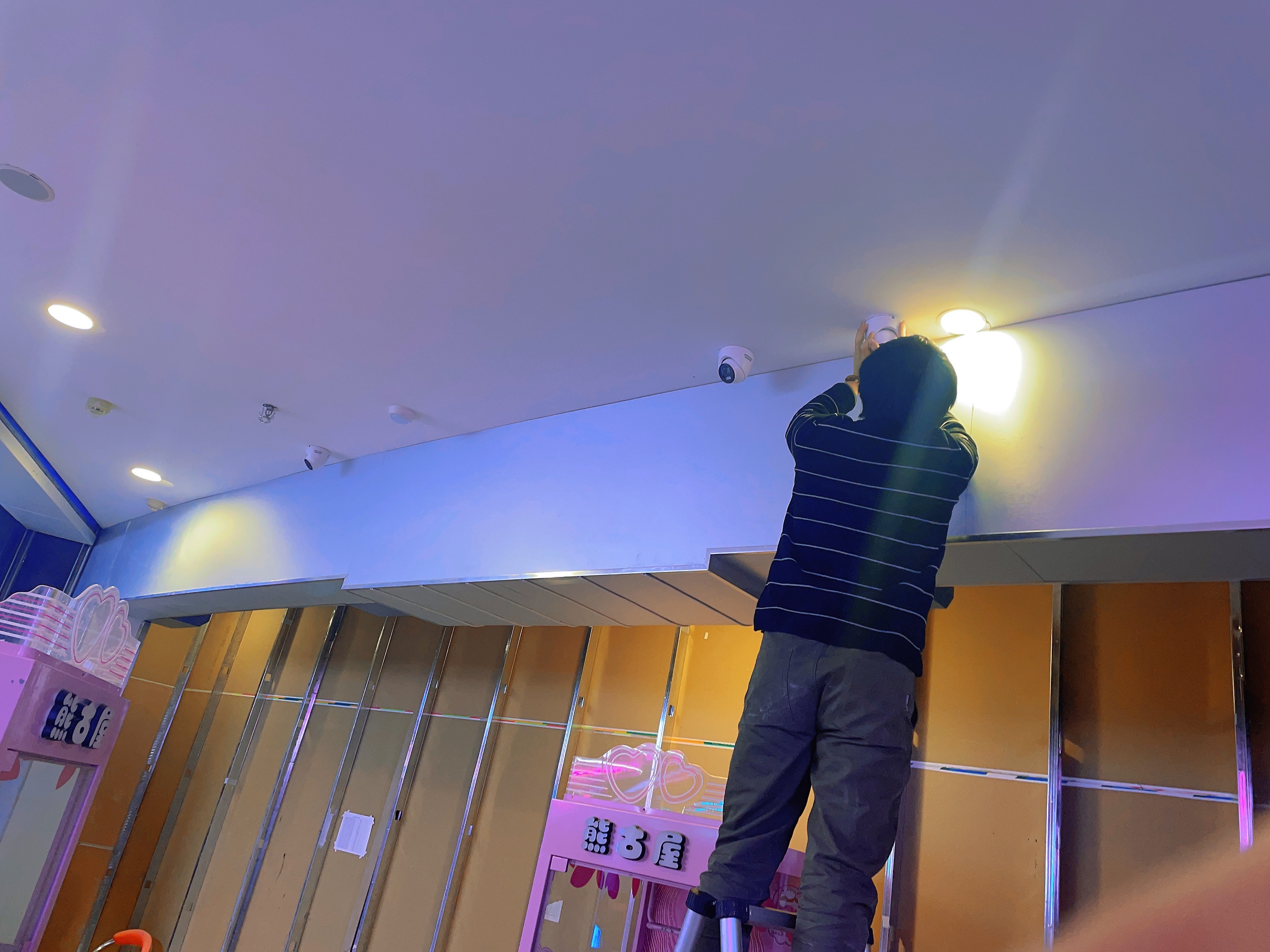 2023年12月信陽萬達廣場二樓寶貝王,監(jiān)控安裝,網(wǎng)絡布線,施工照片!監(jiān)控采用??低?00萬雙光全彩POE攝像機,線材采用普天天紀六類網(wǎng)線