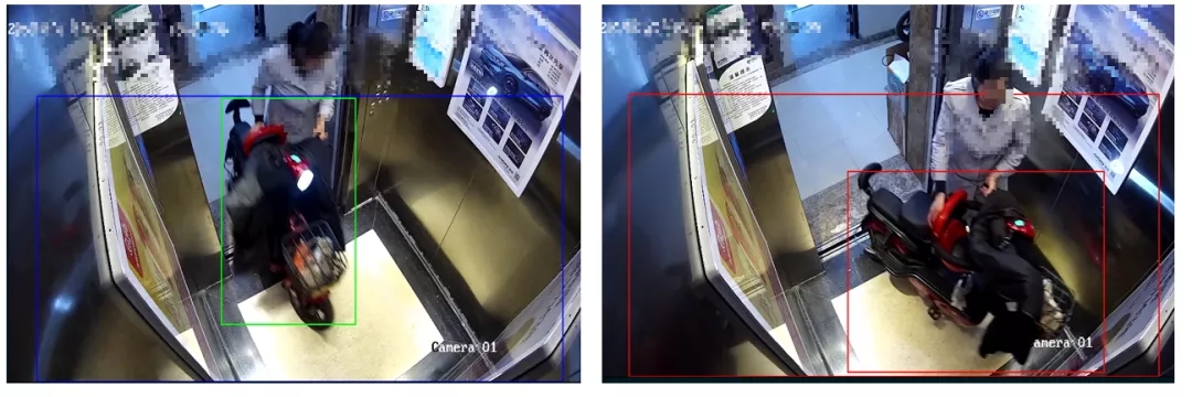 若電瓶車檢測(cè)到并首次報(bào)警,規(guī)則框會(huì)變紅,持續(xù)約3-4S;之后持續(xù)檢測(cè)到電瓶車,則以綠色目標(biāo)框疊加顯示。