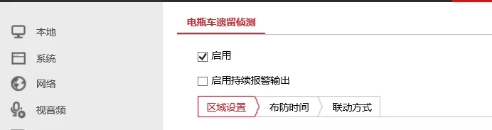 3)啟用“電瓶車遺留偵測(cè)”功能,繪制觸發(fā)規(guī)則區(qū)域。